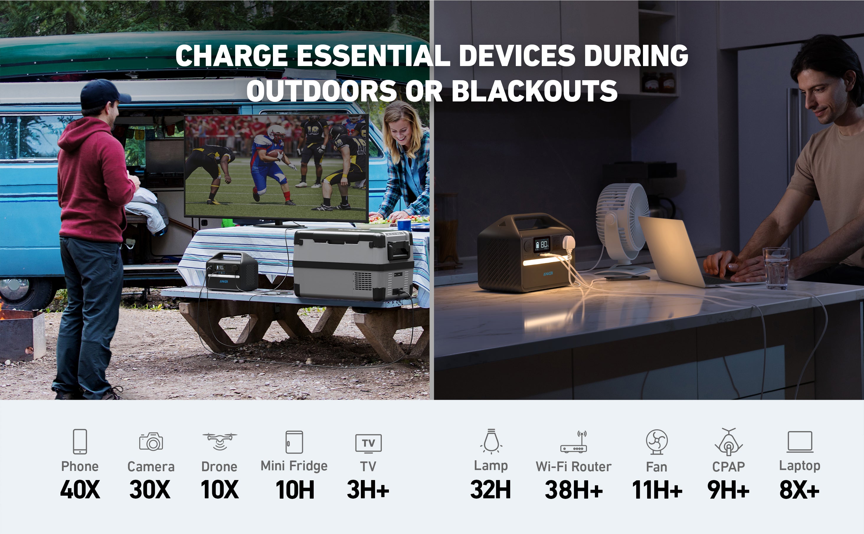 During trips or emergencies, the portable power station is equipped with a built-in light bar for added convenience.